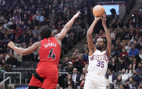 太陽(yáng)隊首發(fā):凱文-杜蘭特、尤素福-努爾基奇、約什-奧科吉、埃里克-戈登、德文-布克
