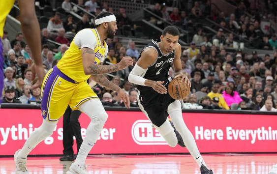 籃球直播吧12月14日訊 NBA常規賽,客場(chǎng)作戰的洛杉磯湖人以122-119擊敗圣安東尼奧馬刺,馬刺遭遇18連敗。戴維斯37分10籃板1助攻,文班亞馬30分13籃板2助攻。