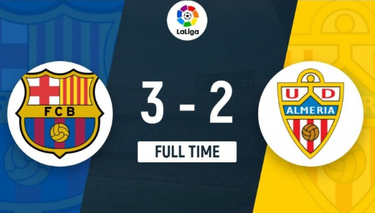 西甲第18輪,巴薩主場(chǎng)對陣阿爾梅里亞。上半場(chǎng),阿勞霍頭球攻門(mén)被撲,拉菲亞補射破門(mén)。隨后阿勞霍失誤,巴普蒂斯塔為阿爾梅里亞扳平比分;下半場(chǎng),拉菲尼亞角球助攻羅貝托頭球破門(mén)。佩尼亞被阿勞霍撞翻造成脫手,埃德加打進(jìn)空門(mén)。萊萬(wàn)助攻羅貝托再次超出,佩尼亞終場(chǎng)前貢獻關(guān)鍵撲救。最終,巴薩3-2戰勝墊底的阿爾梅里亞,終結聯(lián)賽2輪不勝&各項賽事3場(chǎng)不勝,先賽一場(chǎng)落后暫時(shí)榜首的赫羅納6分。